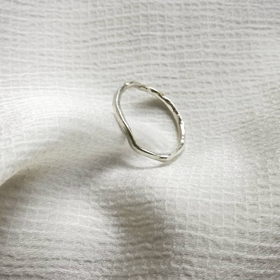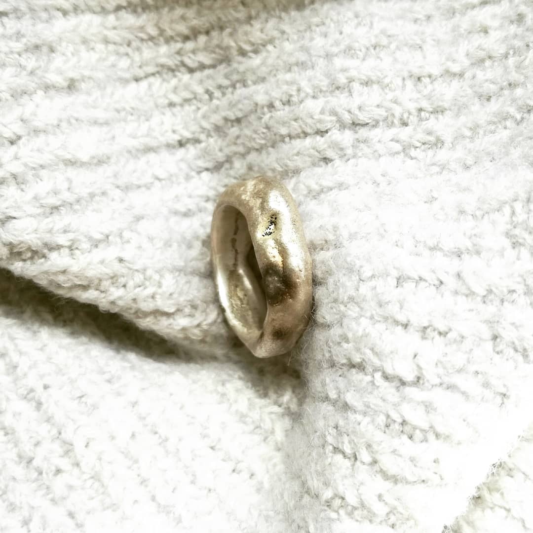 „Jeder Untergrund hat seine eigene Geschichte – er prägt Farbe, Form und Oberfläche des Schmuckstücks. Ich schmelze das Silber direkt in der Erde, so verbinden sich die Elemente.”